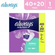 Always Daily Liners Comfort Protect Normal 40 + 20 Pads Free