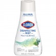 - Clorox Disinfecting Mist works on hard and soft surfaces, including counters, doorknobs, couches, car interiors, plastic toys and bedding.