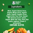 - Ingredients: Water, Organic Banana Puree, Organic Mango Puree, Organic Apple, Organic Pumpkin Puree, Organic Green Peas Puree, Coconut Milk (Coconut extract, water), Organic Whole OAT Flour, Citric Acid (acidity regulator), Vitamin C (antioxidant). CONTAINS GLUTEN.