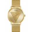 - Watch With Champagne Dial With Triangle Logo With Studs And Milan Mesh Bracelet Polished Steel Ip Orocon Snap Closure.
