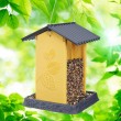 - This birdfeeder displays a nature-inspired pinecone design on the yellow side panels adding to the whimsical charm of the feeder.