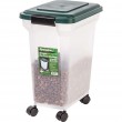 - Pet food bins have airtight seals and snap lock latches to keep out moisture and pests for secure dry food storage