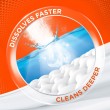 - It dissolves the moment it enters in contact with water and instantly begins its action, providing outstanding cleaning.