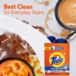 - New Tide Fast Action Powder detergent washes away perfectly the toughest stains on your clothes leaving no traces of residues behind.