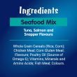 - مزيج لا يقاوم من نكهات التونة والسلمون وسمك النهاش في كل عبوة