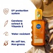 - يوفر بخاخ زيت الشمس لاكتساب السُمرة، صن كاروتين من نيڤيا، حماية من الأشعة فوق البنفسجية UVA وUVB
