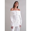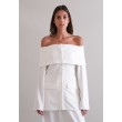 طقم بليزر بكتف مكشوف و بنطلون أوف وايت - لارج