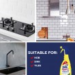 - الشحوم والأوساخ العنيدة: رش مباشرة على الأسطح المتسخة واتركها تنقع لبضع ثوان قبل مسحها.