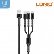 لدنيو - كيبل شحن سريع 3 في 1 بطول 1.2 متر 3.4 امبير - رمادى