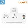 - لدنيو - وصلة تمديد كهربائي بقوة 20 واط مع 2 مفذ USB ومنفذ USB-C بخاصية PD - أبيض