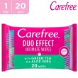 - إضافة مناديل التنظيف اليومية للمناطق الحساسة CAREFREE Duo Effect الجديدة إلى روتين النظافة اليومية ستمنحك انتعاشًا طويل الأمد لمدة تصل إلى 12 ساعة.