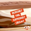 - بسكويت رقيق للغاية ولكنه لذيذ جدًا! بمجرد أن تعض كيندر كاردز، تكتشف الحشوة الكريمية في الداخل: قطعتان مقرمشتان من ويفر، إحداهما بالحليب والأخرى بالكاكاو، رقيقتان جدًا لدرجة أنك بمجرد العض تكتشف الحشوة الكريمية بالحليب والكاكاو بطعم كيندر الفريد، دون الشعور بالثقل.