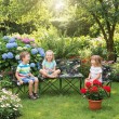 طقم تخييم للأطفال أربعة كراسي وطاولة - أخضر عسكري
